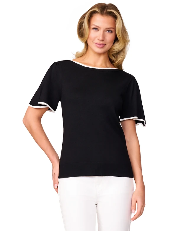 endless rose Women's Pearl Trim Short Sleeve Sweater