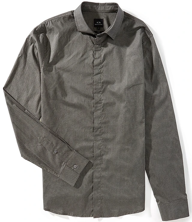 Armani Exchange Poplin Diamond Print Short Sleeve Woven Shirt