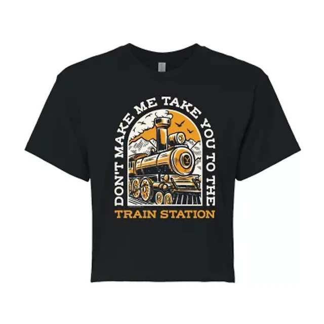 Yellowstone Train Station Cropped Tee Womens Juniors Crew Neck Short Sleeve Regular Fit Graphic T-Shirt
