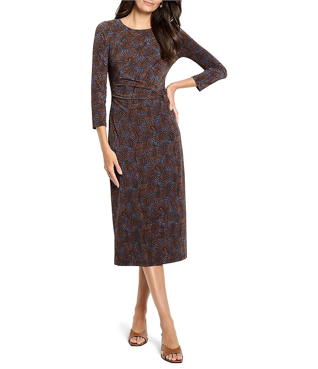 NIC + ZOE Juni Abstract Dot Point Collar Long Sleeve Button Front Midi Shirt Dress