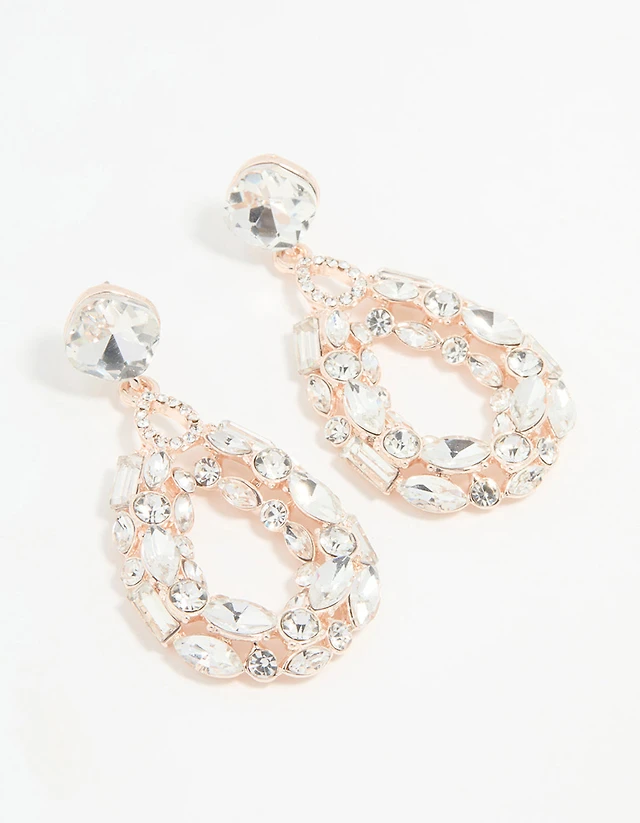 Rose Gold Pink Flower Cluster Drop Earrings