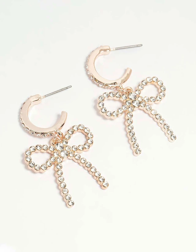 Rose Gold Diamante Pave Bow Hoop Earrings