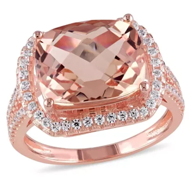 Simulated Morganite and Cubic Zirconia Halo Ring Rose Plated Sterling Silver