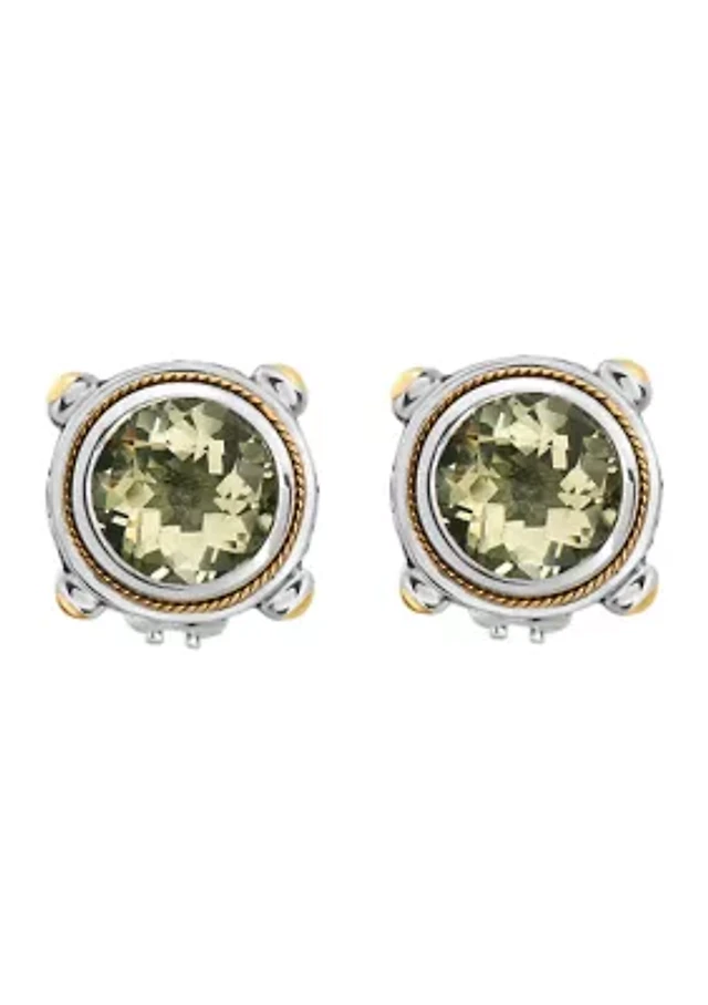 Sterling Silver/18K Yellow Gold Green Amethyst Earrings