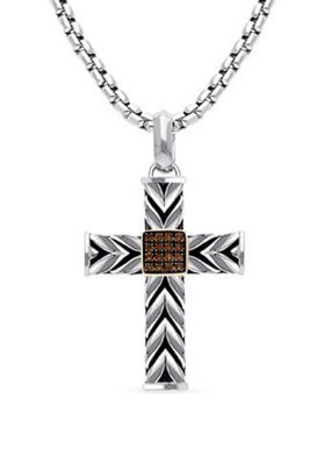 Chocolatier® Men's Pendant featuring 1/8 ct. t.w. Chocolate Diamonds® in Sterling Silver and Strawberry Gold®