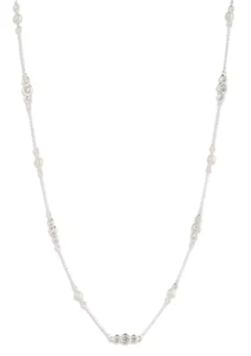 This necklace from Lauren Ralph Lauren features a delicate design adorned with sparkling stones. Perfect for women seeking a touch of glamour, this piece elevates both casual and formal looks. Lobster closure Polished finish Imported Product Specifications 16" L Material & Care Silver-tone metal Clean with a soft cloth