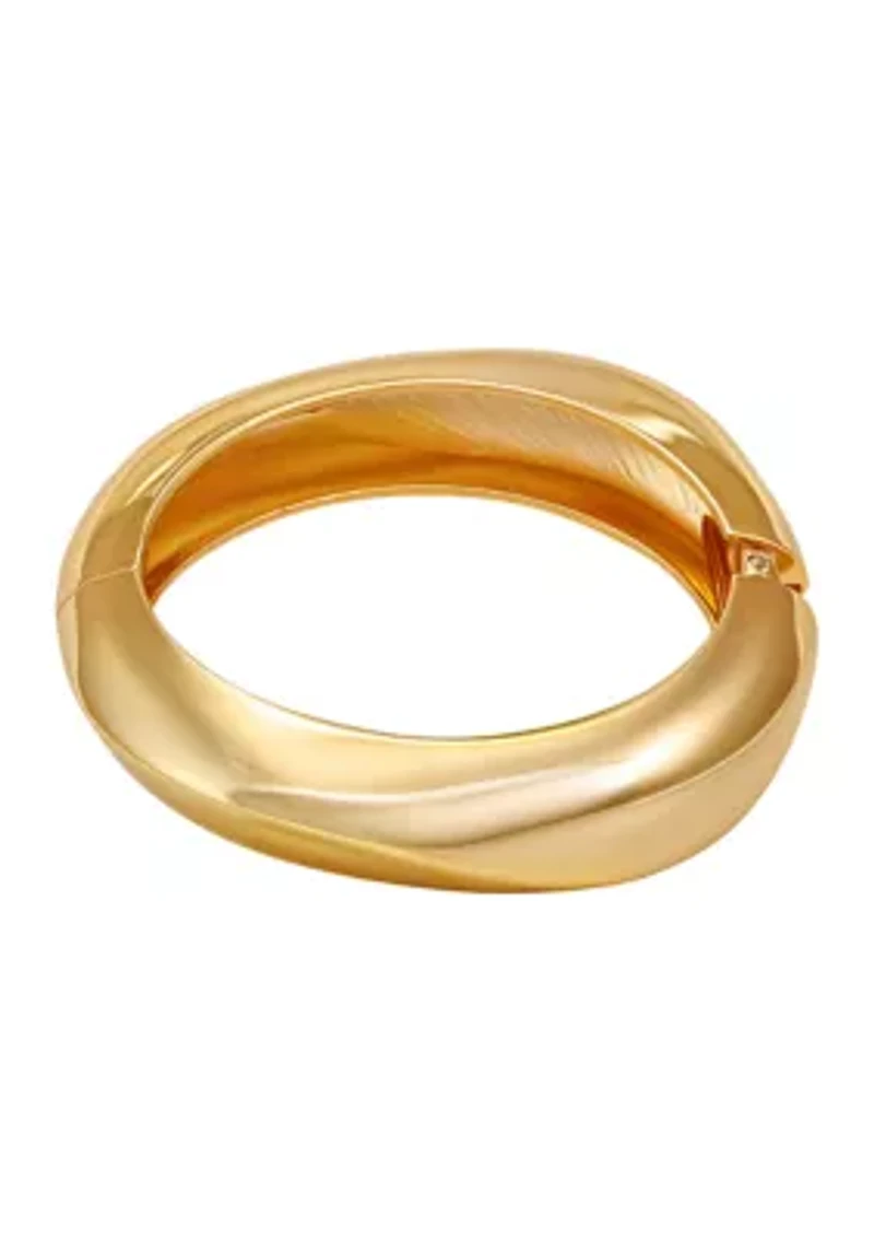Gold H Tone Hinge Bangle Bracelet