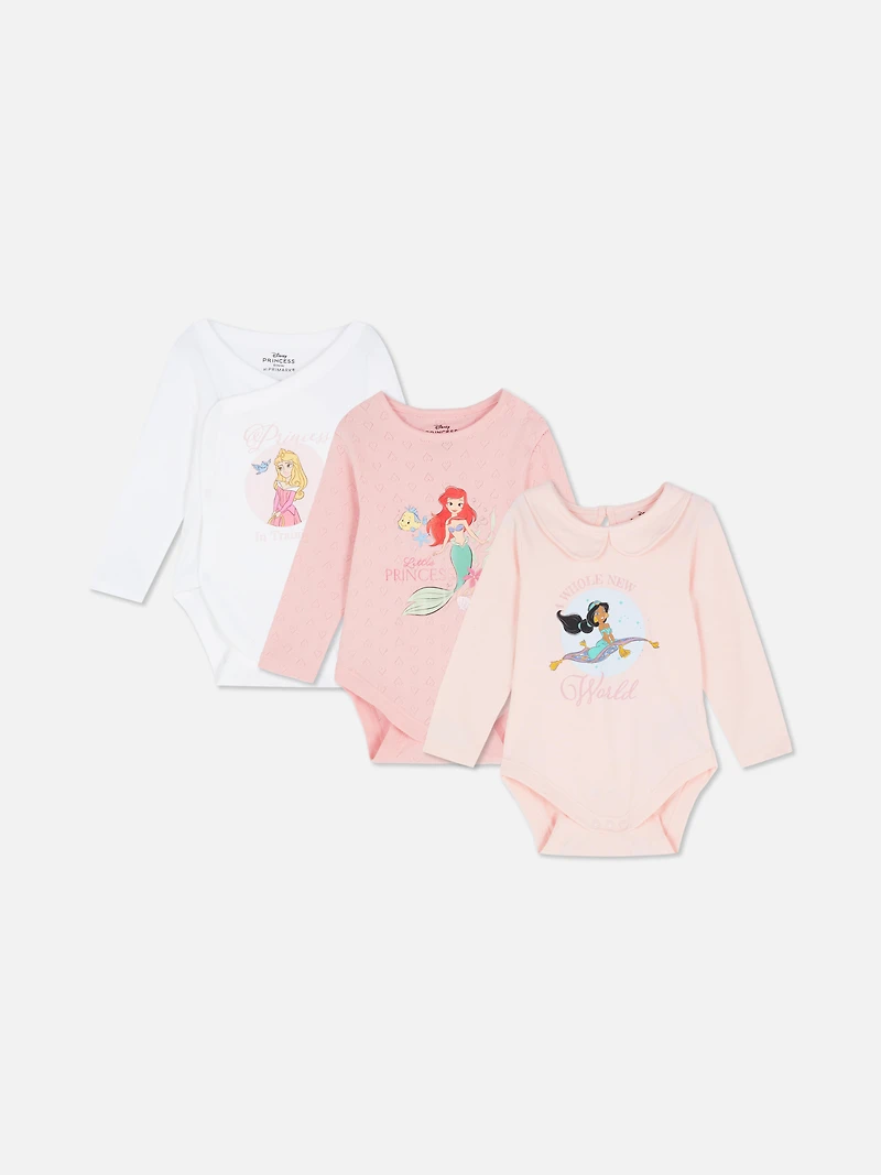 0-18mths | 3pk Disney Princesses Long Sleeve Newborn Bodysuits
