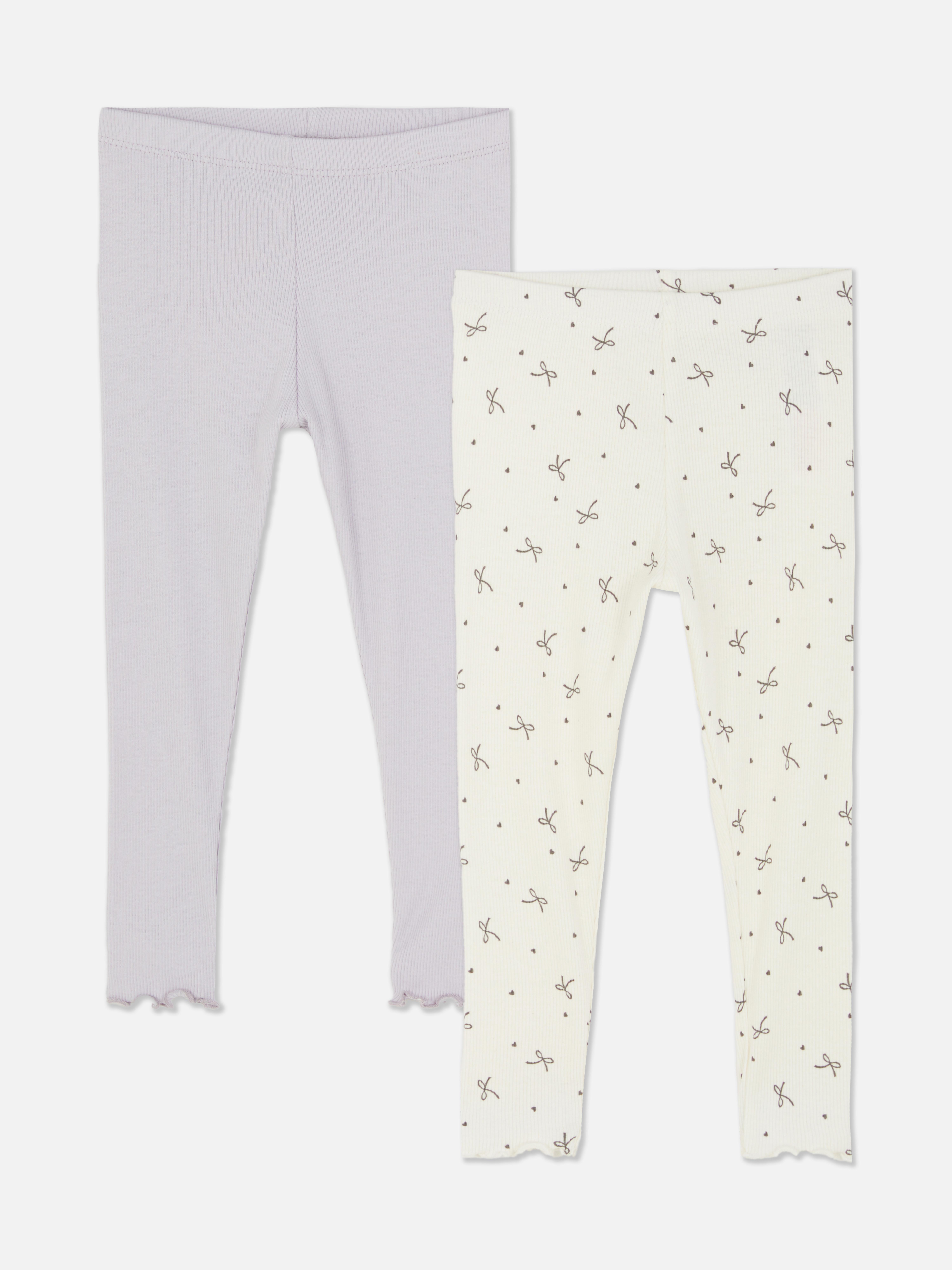 Two pairs of rib leggings with stretch waistbands and lettuce trim hems