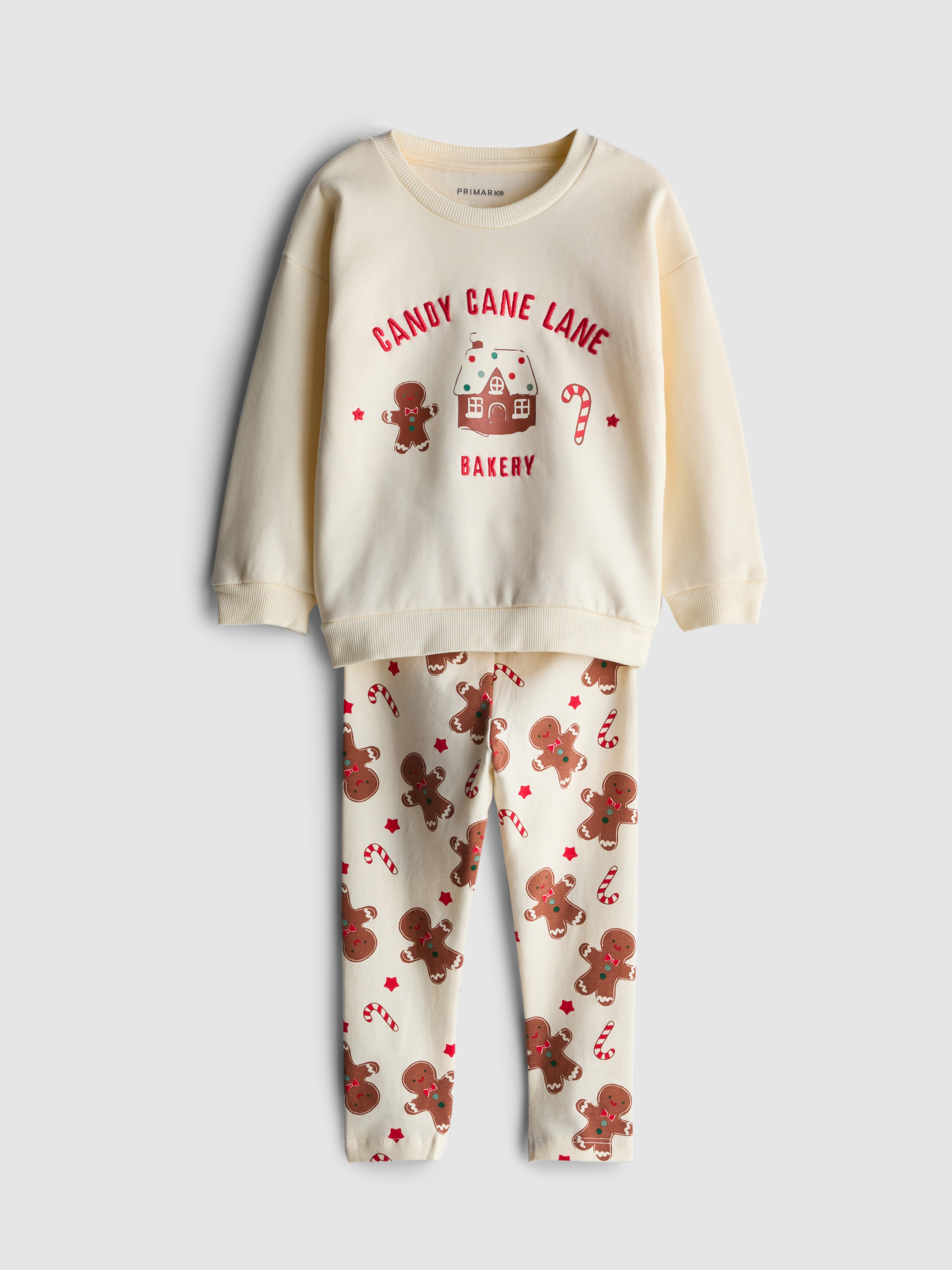 A festive Christmas gingerbread sweatshirt and leggings clothing set