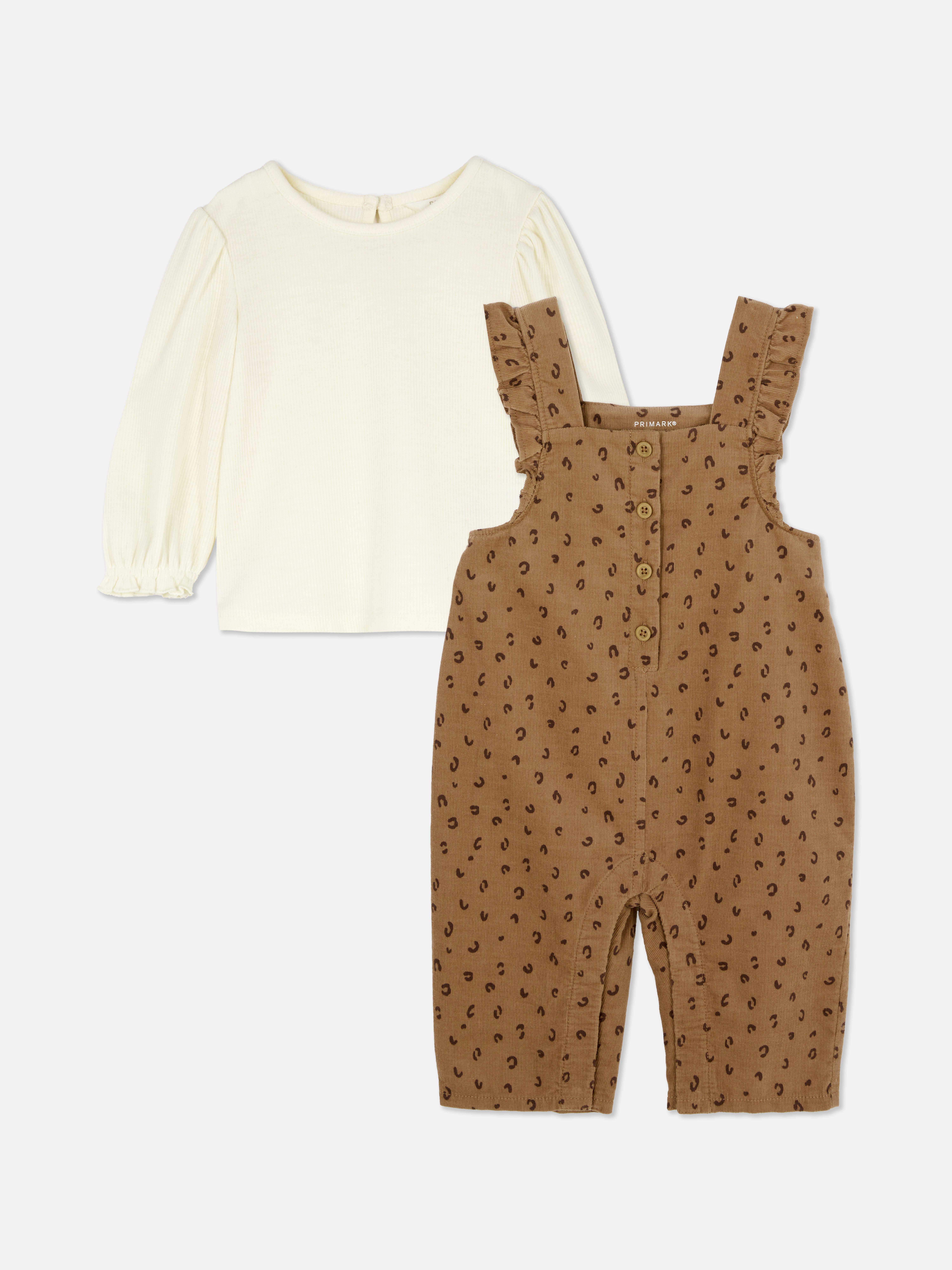 0-36mths | Long Sleeve Blouse and Leopard Print Overalls Set
