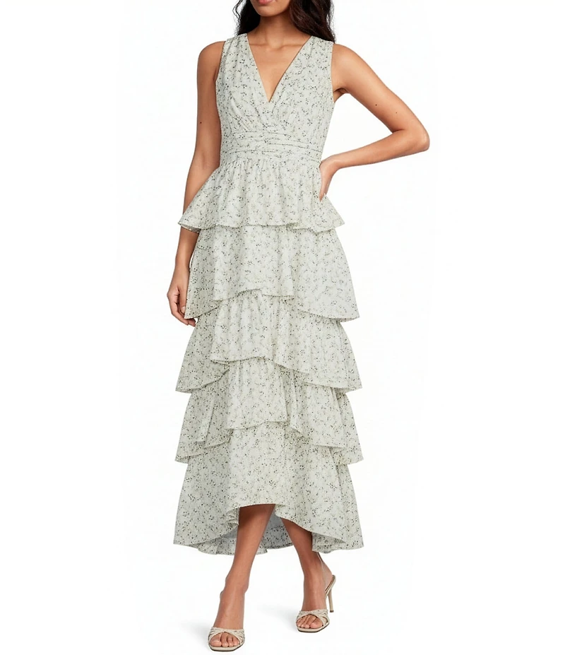 1. STATE V-Neck Sleeveless Ruffle Maxi Dress