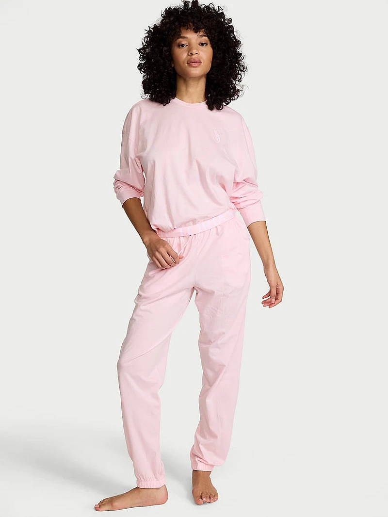 Discover an all-cotton essential Set you'll wonder how you lived without. Our logo details the pocket of the soft, long-sleeved Top, while the matching jogger-style Pants feature pockets on the sides and in back.