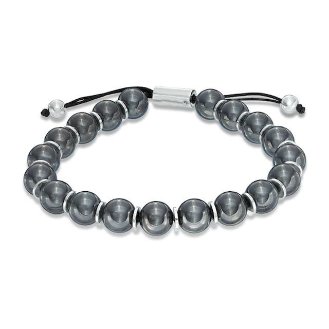 10.0mm Black Hematite Beaded Bolo Bracelet in Sterling Silver - 8.5"
