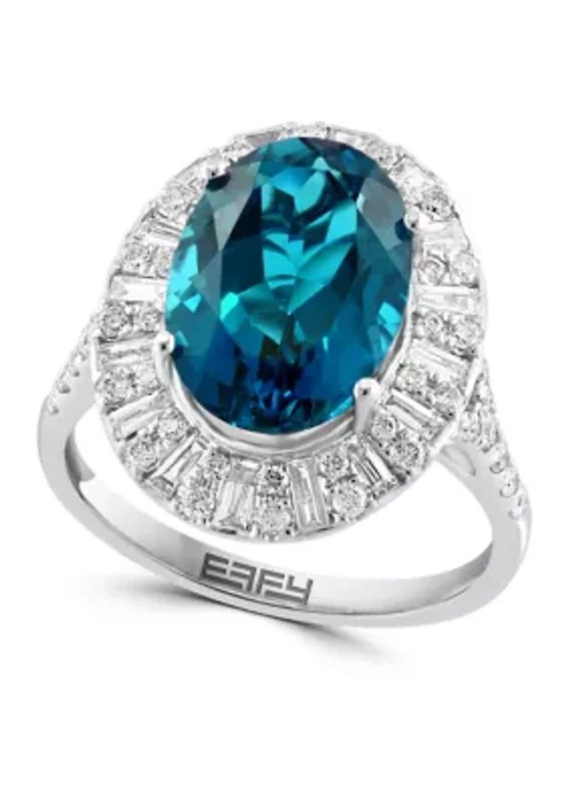 Effy London Blue Topaz (2-1/3 ct. tw.) & Diamond (1/6 ct. t.w.) Ring in 14k Gold over Silver
