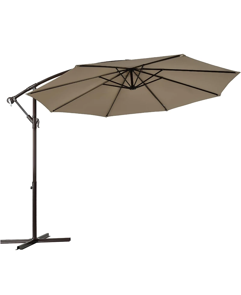 10FT Patio Offset Hanging Umbrella Easy Tilt Adjustment 8 Ribs