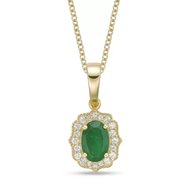 10K Gold Emerald and 1/10 ct. t.w. Diamond Pendant Necklace