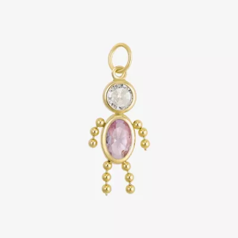 This 10K yellow gold baby boy charm features 1 round-cut cubic zirconia and 1 oval-cut simulated alexandrite in a bezel setting. Delicate and cute, it makes for a sentimental gift for soon-to-be moms.