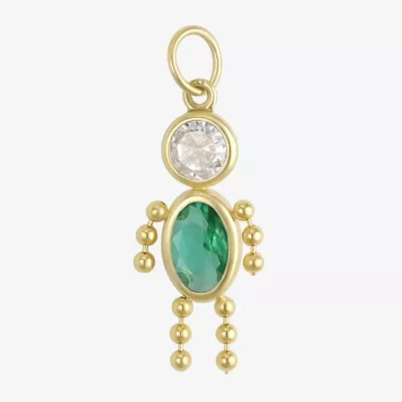 Add a personal touch to your bracelet with this 10K yellow gold baby boy charm. With an oval-shaped simulated emerald and a round-cut cubic zirconia, this adorable keepsake celebrates your little one and brings joy.