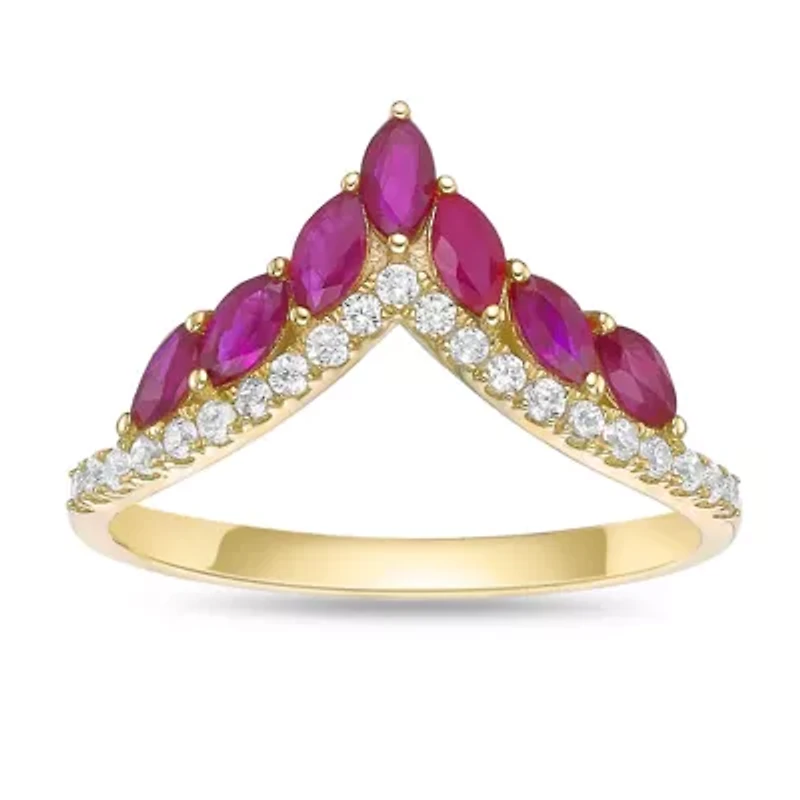 Gemminded 10K Gold Seven-Stone 4x2 MM Marquise-Cut Genuine Gemstone Chevron Ring with 0.17 Carat Diamond Accents Elevate your jewelry collection with the Gemminded 10K Gold Seven-Stone Marquise-Cut Chevron Ring, available in three captivating options: lush green Emerald in yellow gold, vibrant red Ruby in yellow gold, and deep blue Sapphire in white gold. Each ring features seven beautifully aligned marquise-cut gemstones, accented with delicate diamonds totaling 0.17 carat weight (CTW), adding subtle sparkle and highlighting the chevron design. Design & Craftsmanship Expertly crafted in high-polish 10K gold, this chevron ring showcases a striking V-shaped design that elegantly follows the curve of your finger. The marquise-cut gemstones are carefully set to maximize brilliance, while the diamond accents enhance the overall shimmer. Its harmonious balance of contemporary style and timeless elegance ensures a piece that is versatile, sophisticated, and ready to be treasured for years to come. Gemstone Personalities Emerald in Yellow Gold: The vibrant green emerald radiates classic elegance and symbolizes growth and renewal. Ideal for those seeking a versatile, timeless statement piece. Ruby in Yellow Gold: Bold and passionate, the ruby conveys warmth and vitality. Perfect for celebrating love, courage, or meaningful milestones with a touch of vivid elegance. Sapphire in White Gold: Deep blue and serene, the sapphire evokes calm sophistication and timeless luxury, pairing beautifully with both casual and formal ensembles. Specifications Ring Sizes Available: 5, 6, 7, 8, 9 Center Gemstones: Seven genuine 4x2 MM Marquise-Cut Emerald, Ruby, or Sapphire stones Diamond Accents: Multiple small diamonds, 0.17 CTW Metal Options: 10K Yellow Gold (Emerald & Ruby), 10K White Gold (Sapphire) Hypoallergenic: Yes Care: Clean with a soft cloth; avoid harsh chemicals The Gemminded Seven-Stone Marquise-Cut Chevron Ring combines sparkling diamond accents, vibrant gemstones, and expert craftsmanship into a design that exudes elegance and sophistication. Select your favorite gemstone, or collect all three to enjoy refined color and timeless style in every shade. 28 Color rating: H, I Clarity rating: I2I3 Polished finish Prong setting India Imported Product Specifications 8MM 1.01 Material & Care Metal, Yellow Gold Use gold polishing cloth on gold items.