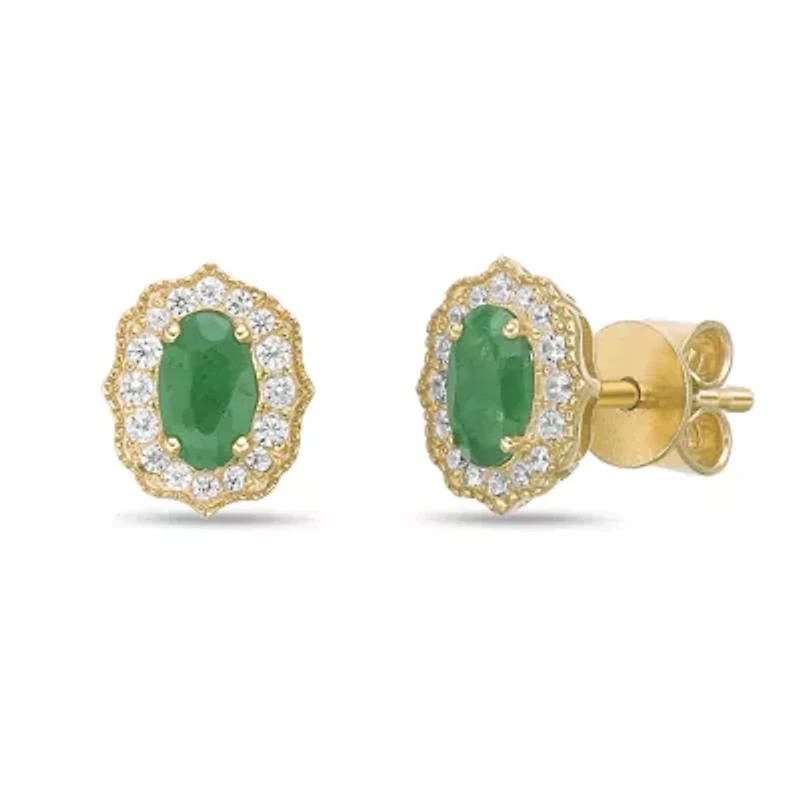 Gemminded 10K Gold 5x3MM Oval-Cut Genuine Gemstone Solitaire Friction Back Stud Earrings with 0.14 Carat Diamond Halo Add timeless elegance to your jewelry collection with the Gemminded 10K Gold 5x3MM Oval-Cut Solitaire Stud Earrings, available in three striking gemstone options: lush green Emerald in yellow gold, fiery red Ruby in yellow gold, and deep blue Sapphire in white gold. Each earring is surrounded by a sparkling halo of diamonds totaling 0.14 carat weight (CTW), enhancing the brilliance and presence of the center gemstone. Design & Craftsmanship Crafted in high-polish 10K gold, these solitaire stud earrings showcase oval-cut gemstones securely set at the center, framed by a halo of finely set diamonds. The halo design amplifies the gemstone’s sparkle while maintaining a refined and elegant silhouette. The friction back closure ensures a comfortable and secure fit for everyday wear or special occasions. Gemstone Personalities Emerald in Yellow Gold: Radiates timeless elegance and symbolizes growth and renewal, perfect for a versatile and classic look. Ruby in Yellow Gold: Bold and passionate, the ruby conveys warmth, energy, and sophistication, ideal for celebrating love or milestones. Sapphire in White Gold: Deep blue and serene, the sapphire evokes calm sophistication and timeless luxury, complementing both casual and formal attire. Specifications Center Gemstones: Genuine 5x3MM Oval-Cut Emerald, Ruby, or Sapphire Diamond Halo: Multiple small diamonds, 0.14 CTW Metal Options: 10K Yellow Gold (Emerald & Ruby), 10K White Gold (Sapphire) Finish: High-polish for maximum brilliance Back Type: Friction Back Hypoallergenic: Yes Care: Clean with a soft cloth; avoid harsh chemicals The Gemminded 5x3MM Oval-Cut Solitaire Stud Earrings with Diamond Halo combine vibrant gemstones, sparkling accents, and expert craftsmanship into a timeless design. Choose your favorite gemstone, or collect all three for a versatile, elegant collection that will be cherished for years. 2 Pieces Post back, 34 Color rating: I, H Clarity rating: I2I3 Polished finish Prong setting India Imported Product Specifications 8mm x 6mm 0.84 Material & Care 10K Gold Metal, Yellow Gold Use gold polishing cloth on gold items.