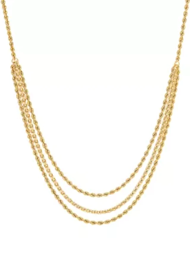 10K Yellow Gold Triple Layer Rope Necklace