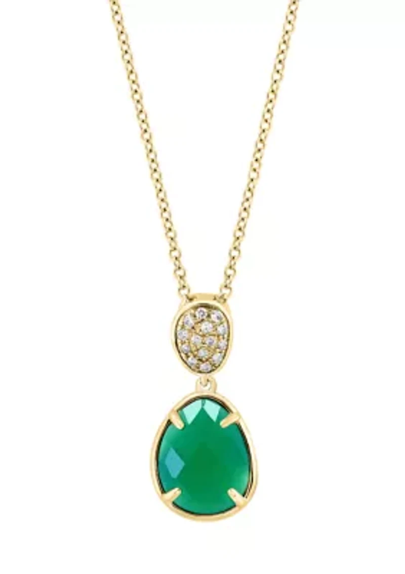 1/10 ct. t.w. Diamond, 1.8 ct. t.w. Green Onyx Pendant Necklace in 14K Yellow Gold