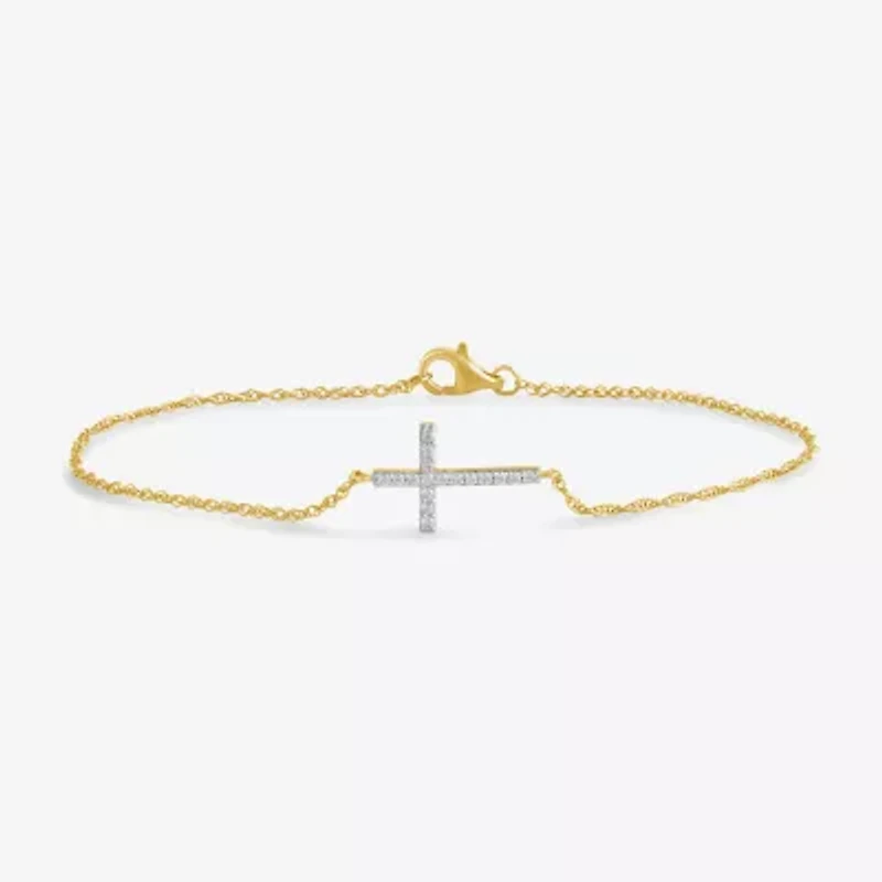 1/10 Ct. T.W. Sideways Cross Womens 10K Gold 7.25 Inch Rope Cross Chain Bracelet