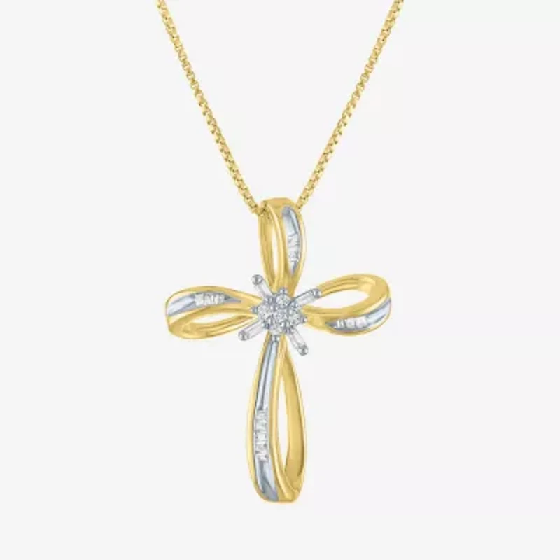 1/10 CT.T.W. Natural Diamond Sterling SIlver Ribbon-Style Cross Pendant Necklace in Franklin, TN