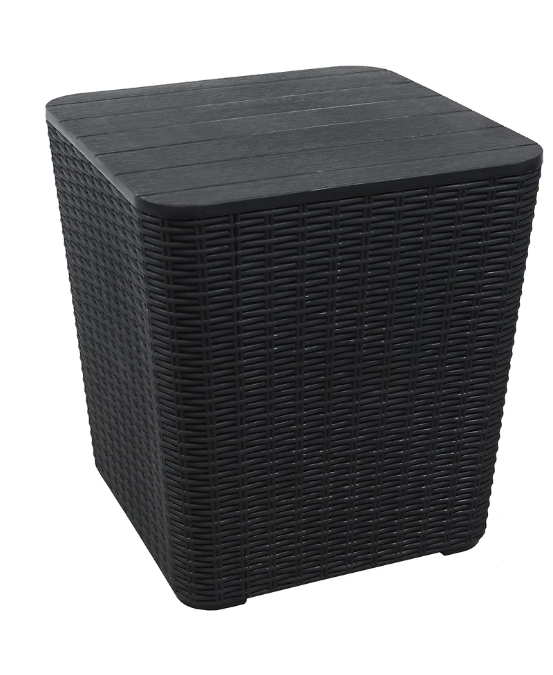Add storage and style to the deck or patio with this multi-functional deck box and side table. The storage box features a Uv-protected and weather-resistant polypropylene and resin construction with a rattan design that is sure to complement any outdoor living space while remaining resistant to the elements outdoors. This storage box features faux wicker that is smooth to the touch and won't crack or break. This storage box is the right height to use as a side table next to any patio or poolside furniture for easy storage of pool toys and pillows while being able to set down your cool drink on top. The side table with storage is easy to assemble and designed to protect and store pillows, pool accessories, outdoor tools, and decor as well as other items. Stow away seasonal decorations, toys from the pool without worrying about water damage to the box, or other tools and items you want to have on hand.