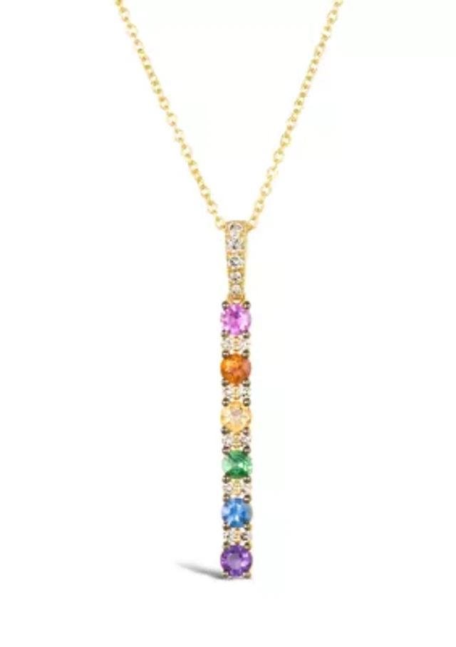 1/2 ct. t.w. Diamond and Multi Stone Stick Pendant Necklace in 14K Honey Gold™
