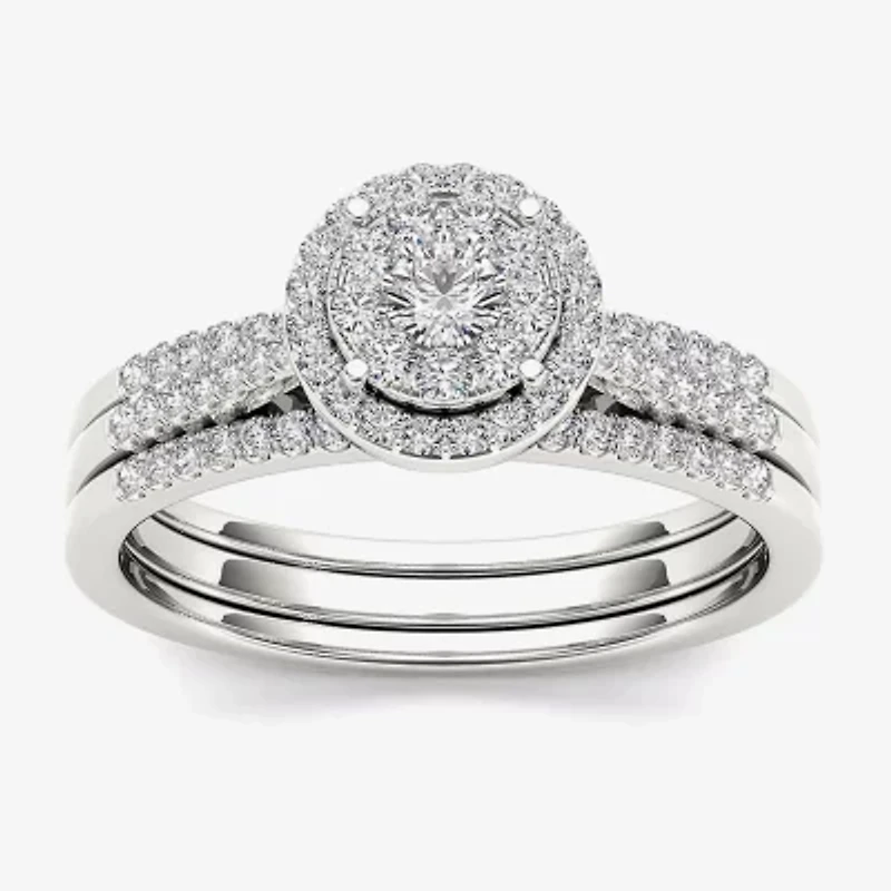 1/2 CT.T.W. Natural Diamond 10K White Gold Halo Bridal Ring Set