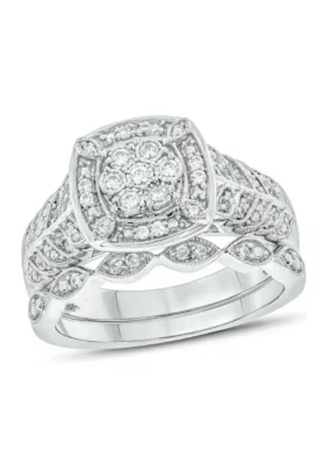 1/10 CT TW Diamond Vintage Bridal Set Sterling Silver
