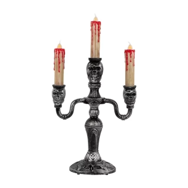 13.75'' Antique Silver Skull Trio Halloween Candelabra