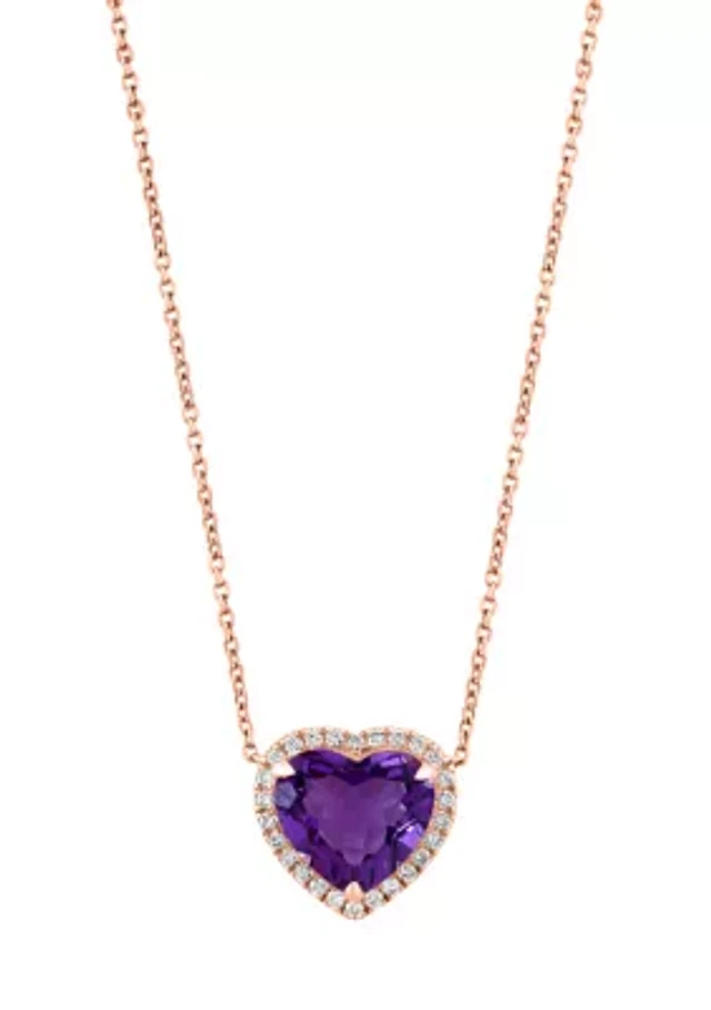 1/4 ct. t.w. Diamond, 3.6 ct. t.w. Amethyst Pendant Necklace in 14K Rose Gold