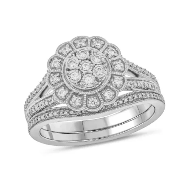 1/4 ct. t.w. Diamond Flower Bridal Ring Sterling Silver