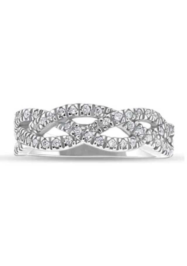 .925 Sterling Silver 1/4 Cttw Diamond Three Row Channel Band Ring