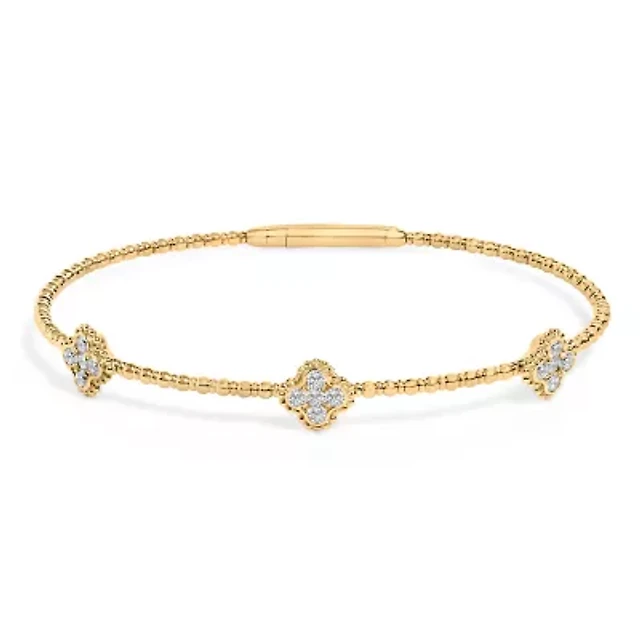 14K 1/2 Cttw Diamond Quatrefoil Clover Style Bangle Bracelet