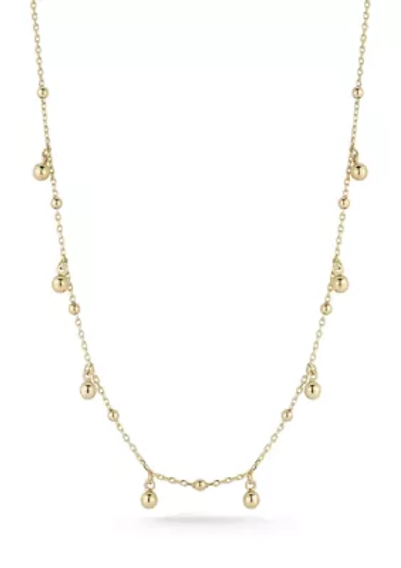 A study in minimalist elegance, the Ember Fine Jewelry 14K Gold Ball Charm Necklace features a perfectly polished gold ball that catches the light with a gentle shimmer. Suspended from a delicate gold chain, this necklace offers timeless sophistication and versatility, making it an ideal piece for everyday wear or a thoughtful, stylish gift. BASE METAL: 14K Gold. CHAIN LENGTH: Approx. 17in + 1in extension. CLOSURE: Spring ring clasp. 1 necklace Spring ring clasp Polished finish Turkey Imported Product Specifications Approx. 17in chain length + 1in extension Material & Care Gold Use gold polishing cloth on gold items.