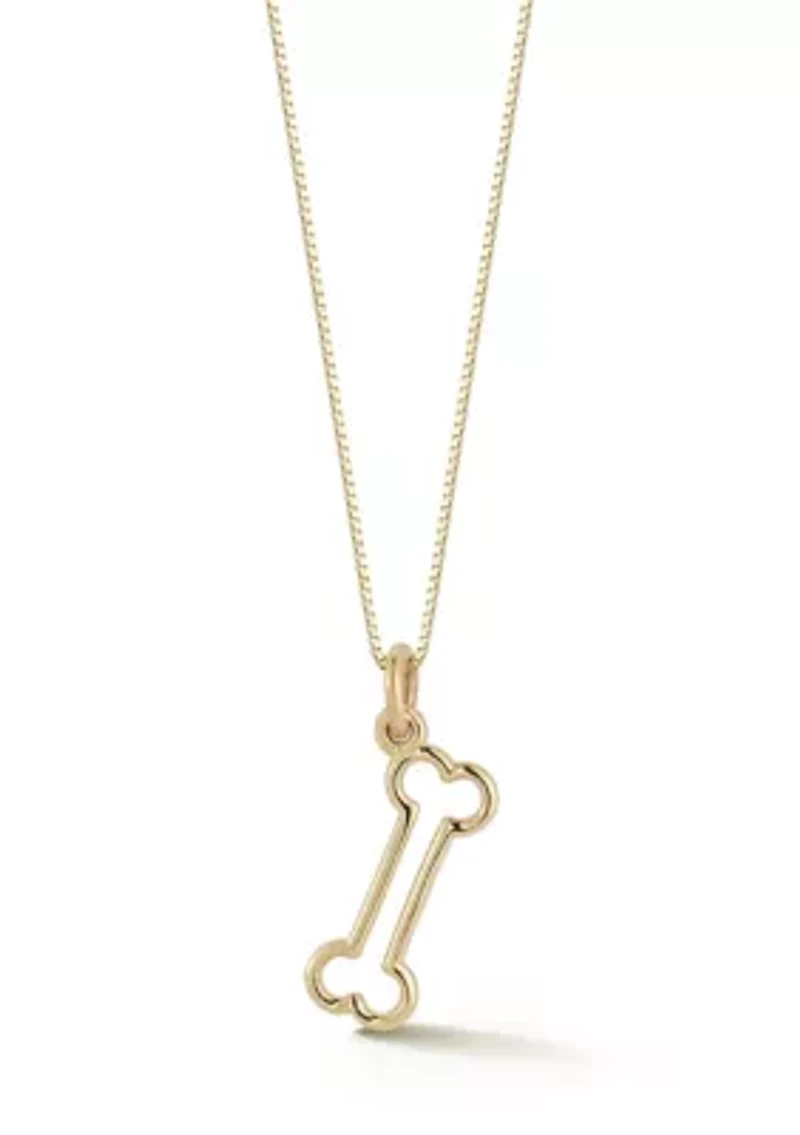 14K Gold Bone Pendant Necklace, Made in Italy