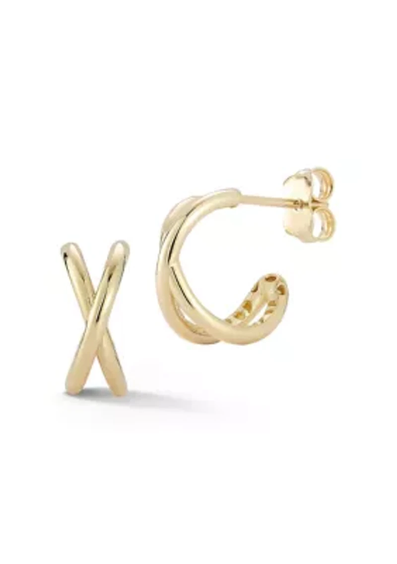 A modern twist on a classic staple, the Ember Fine Jewelry 14K Gold Criss Cross Small Hoop Earrings bring subtle dimension to everyday style. Crafted in solid 14K gold, these petite hoops make a criss-cross shape that adds texture and visual interest while maintaining a clean, refined look. Lightweight and comfortable with a close-to-the-ear fit, they’re perfect for effortless daily wear. Whether styled solo for understated polish or layered with other earrings for a curated ear, these hoops offer timeless versatility with a contemporary edge. BASE METAL: 14K Gold. EARRING DROP: Approx. 0.55in. CLOSURE: Post back. 1 pair of 2 earrings Post back Polished finish Turkey Imported Product Specifications Approx. 0.55in earring drop Material & Care Gold Use gold polishing cloth on gold items.