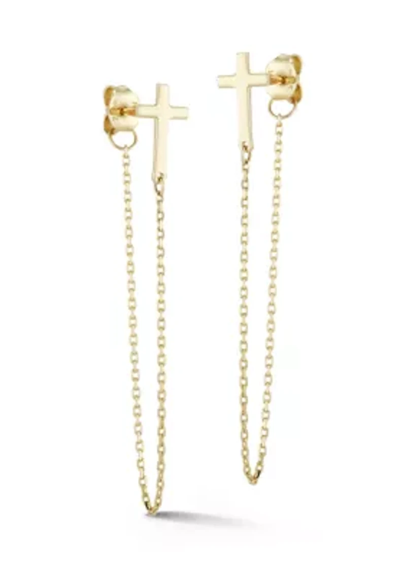 14K Gold Cross Front/Back Earrings