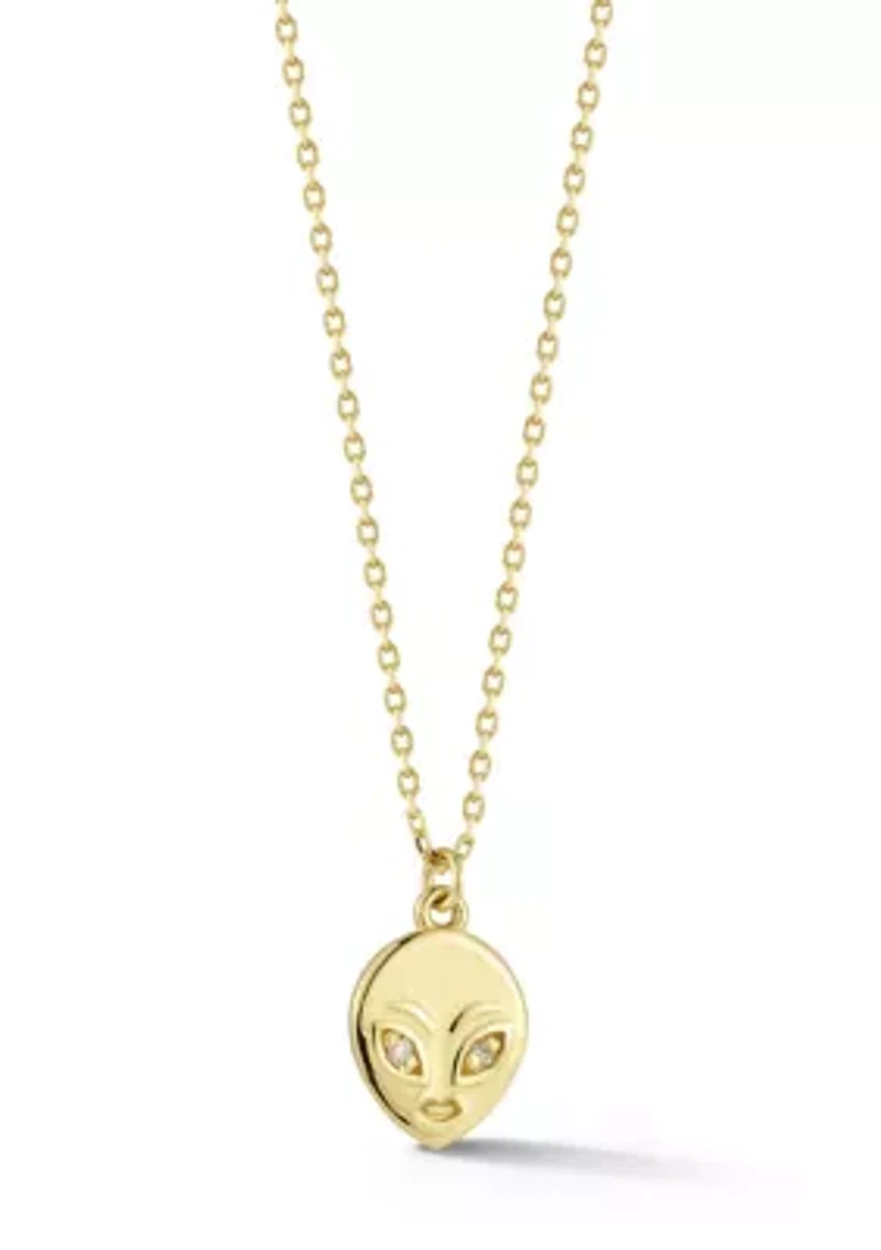14K Gold Diamond Dainty Alien Pendant Necklace