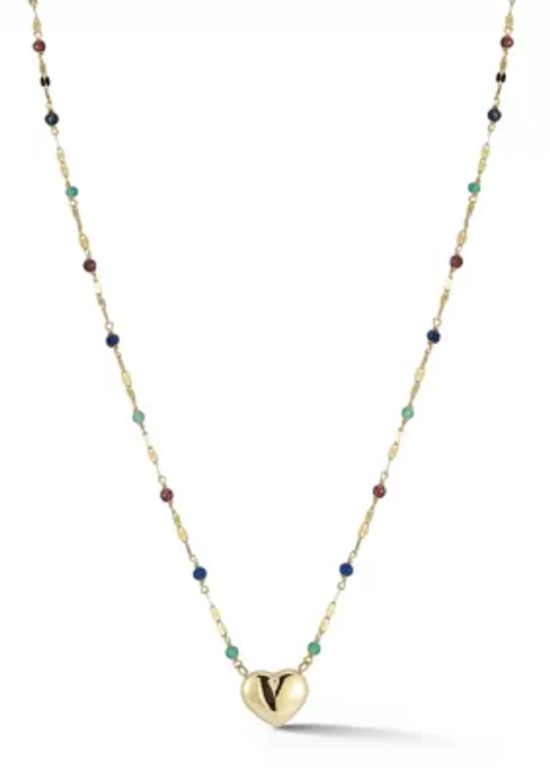 14K Gold Heart Pendant Gemstone Beaded Necklace, Made in Italy
