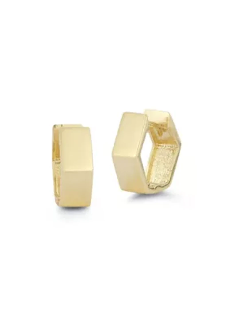14K Gold Hexagon Huggie Hoop Earrings