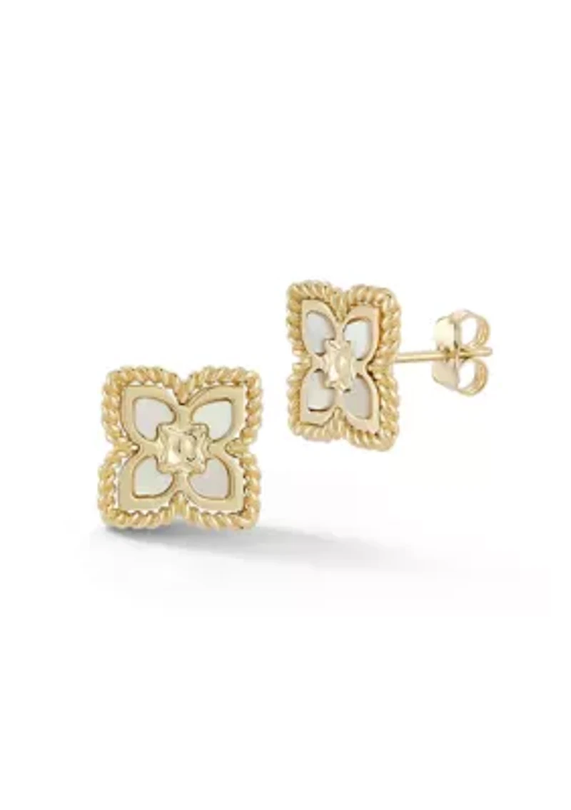 14K Gold Mother of Pearl Flower Stud Earrings
