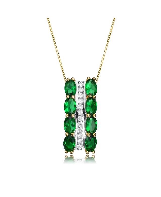 14K Gold Plated Green and White Cubic Zirconia Vertical Pendant Necklace