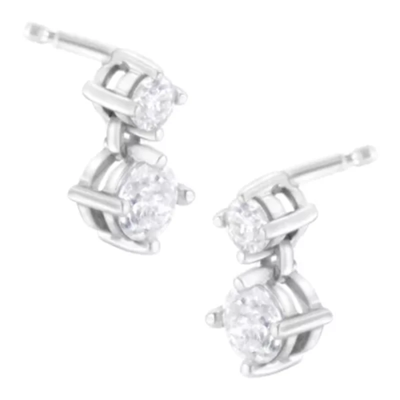 14K White Gold 1 cttw Double Diamond Stud Earrings