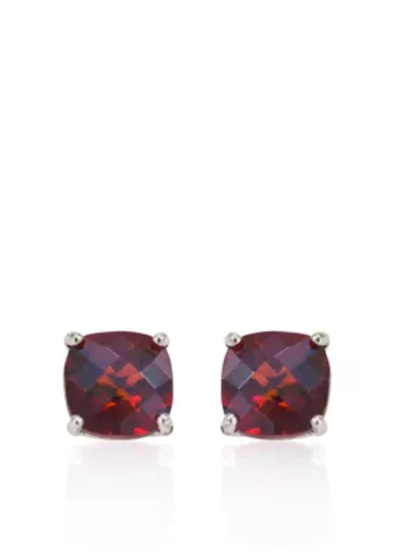 14k white gold stud earrings feature 2.00 ct. t.w. cushion garnets and measure 6mm x 6mm. Almost all gemstones have been treated to enhance their color. Clean with a soft bristle brush and warm soapy water. Use gold polishing cloth on gold items. Domestic Prong setting 2 Garnets Domestic