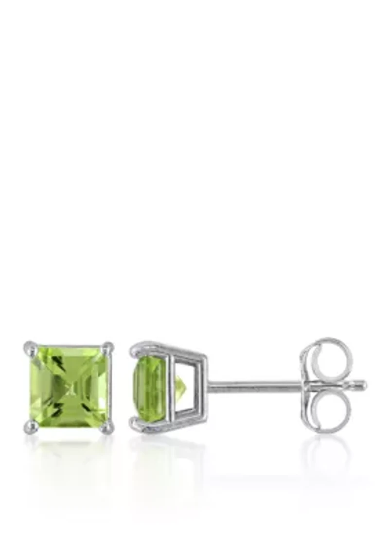 These 14k white gold stud earrings feature 5/8 ct. t.w. square shape peridot and measure 4.50-mm in length and 4.50-mm in width. Almost all gemstones have been treated to enhance their beauty and require special care. Prong setting 2 Peridot Imported